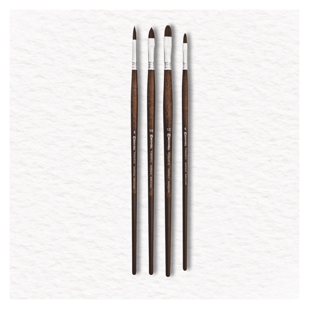 Táto sada obsahuje štyri štetce s dlhou rukoväťou, ktoré sa ideálne hodia na vytváranie jemných detailov a zároveň poskytujú vynikajúci výkon pri maľovaní väčších plôch a pozadí. Versàtil je vzrušujúcim a pôsobivým doplnkom do sveta syntetických štetcov. Každý štetec je ručne vyrobený v Španielsku spoločnosťou Escoda podľa profesionálnych štandardov, čo zaručuje ich odolnosť a konzistentnosť počas celej vašej maliarskej praxe.