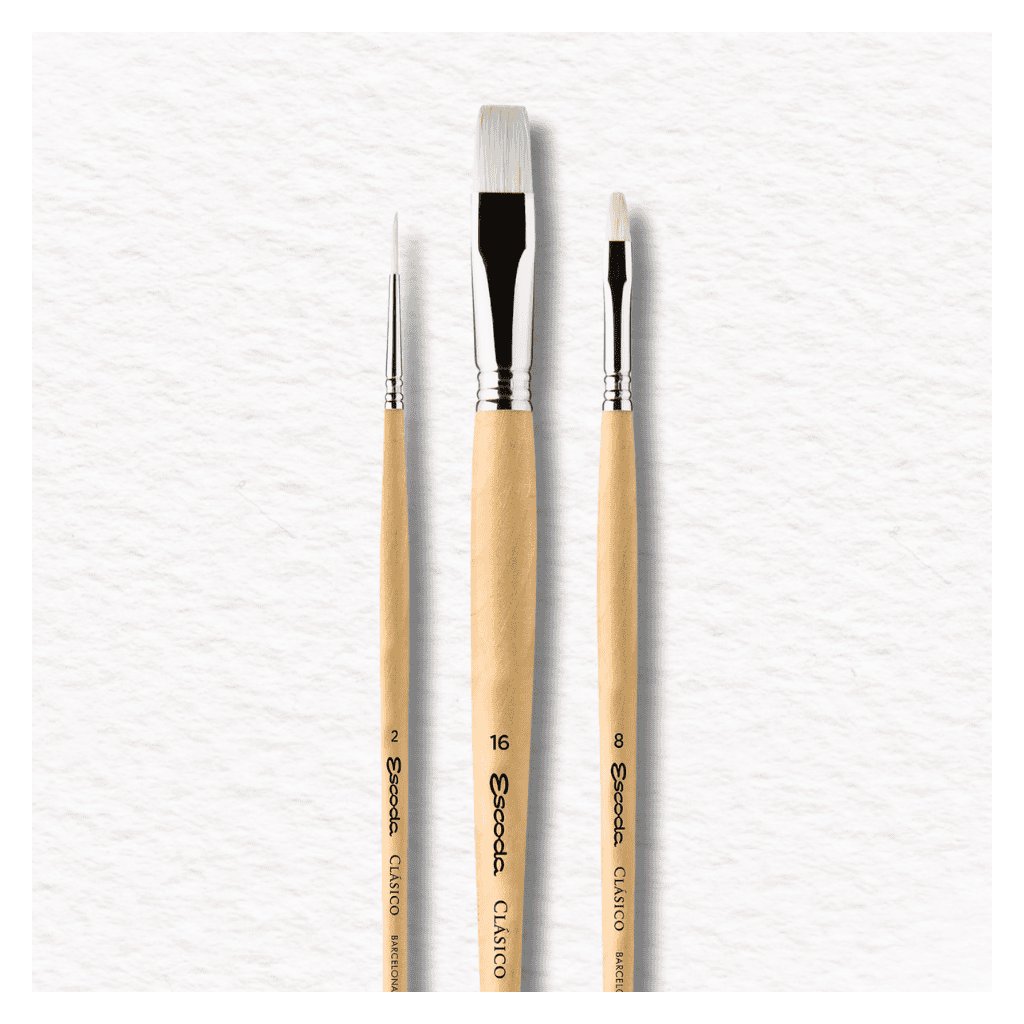 Štetce Escoda Clásico sú vysoko kvalitné štetce s bielymi štetinami Chungking Hog určené na maľovanie olejom a ťažkými akrylovými farbami. Štetiny Chungking, ktoré sú známe svojou tuhosťou a pevnosťou, poskytujú vynikajúcu kontrolu pri nanášaní hustej farby a vytváraní expresívnych stôp.