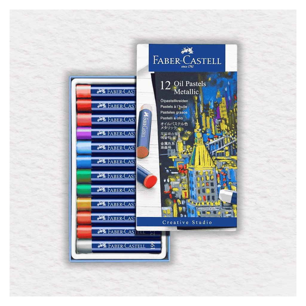 Olejové pastely Faber-Castell - Creative Studio - Metallic - 12 ks je cenovo dostupný rad pre študentov, ktorý ponúka kvalitu za bezkonkurenčnú cenu. Živé farby s intenzívnou svietivosťou pre enkaustické, pastelové a škrabacie techniky. Okrem dobrej svetlostálosti sú veľmi mäkké a ľahko sa zmiešajú prstom alebo lakom. Existujú nekonečné možnosti miešania jednotlivých farieb pre vytváranie nových odtieňov.