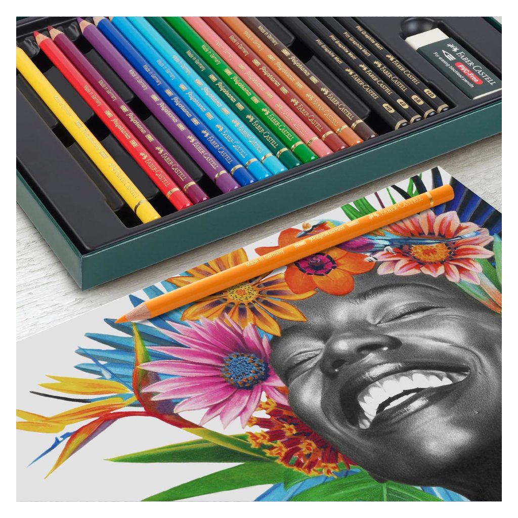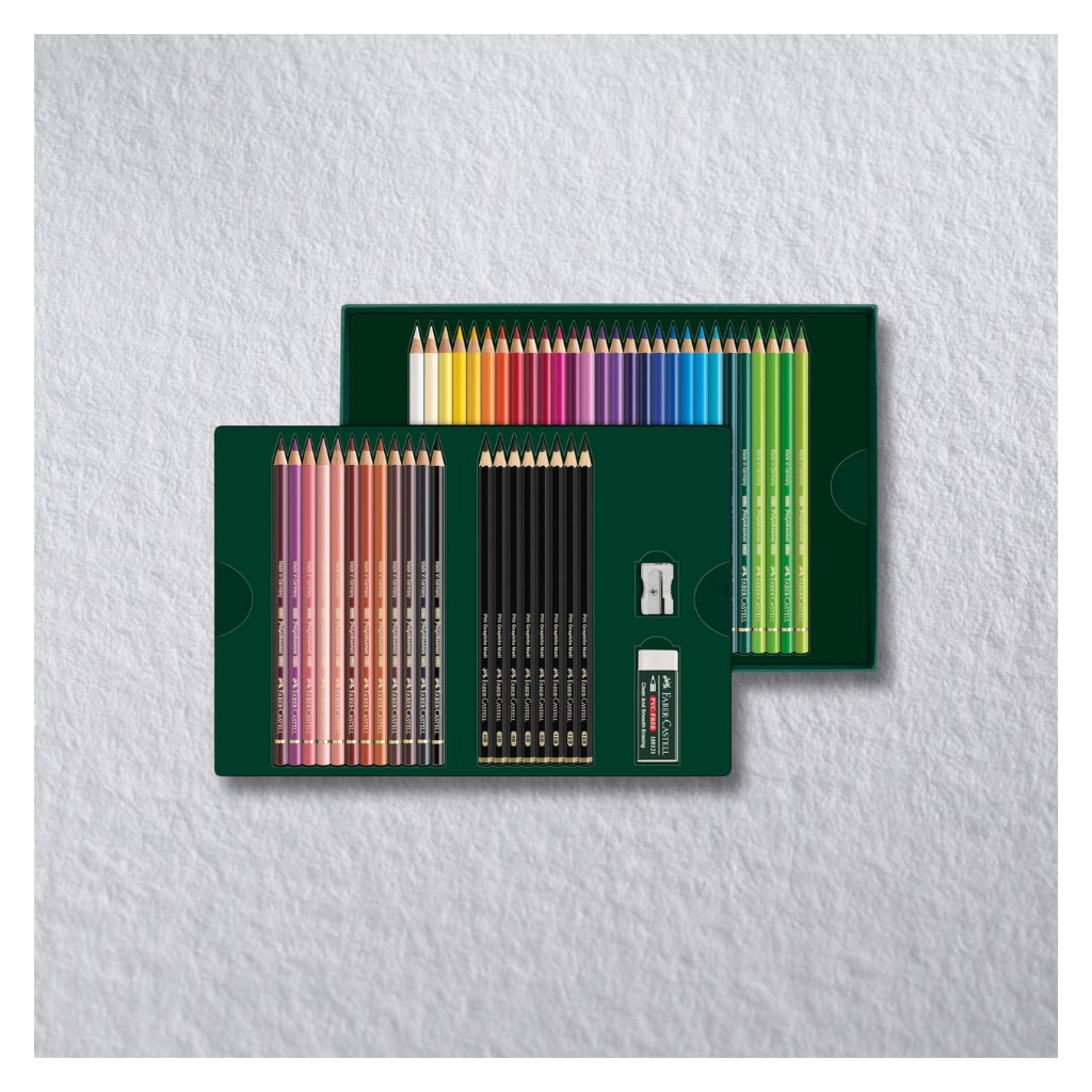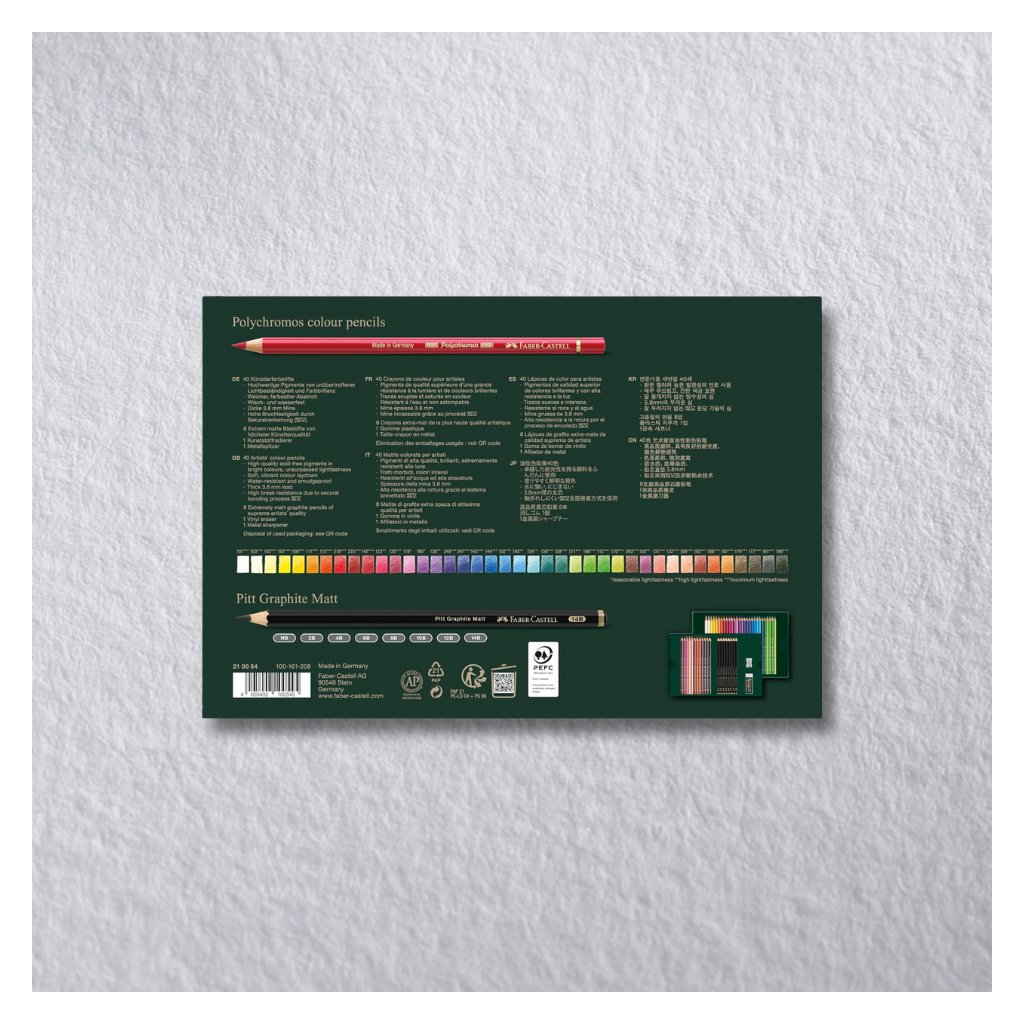 Popustite uzdu svojej kreativite so sadou 40 farebných farebných ceruziek Faber-Castell Polychromos a 8 grafitových ceruziek Pitt Graphite Matt. Táto sada je navrhnutá tak, aby spĺňala požiadavky aj tých najnáročnejších umelcov. Ponúka výnimočný zážitok z kreslenia vďaka bezkonkurenčnej kvalite produktov Faber-Castell.