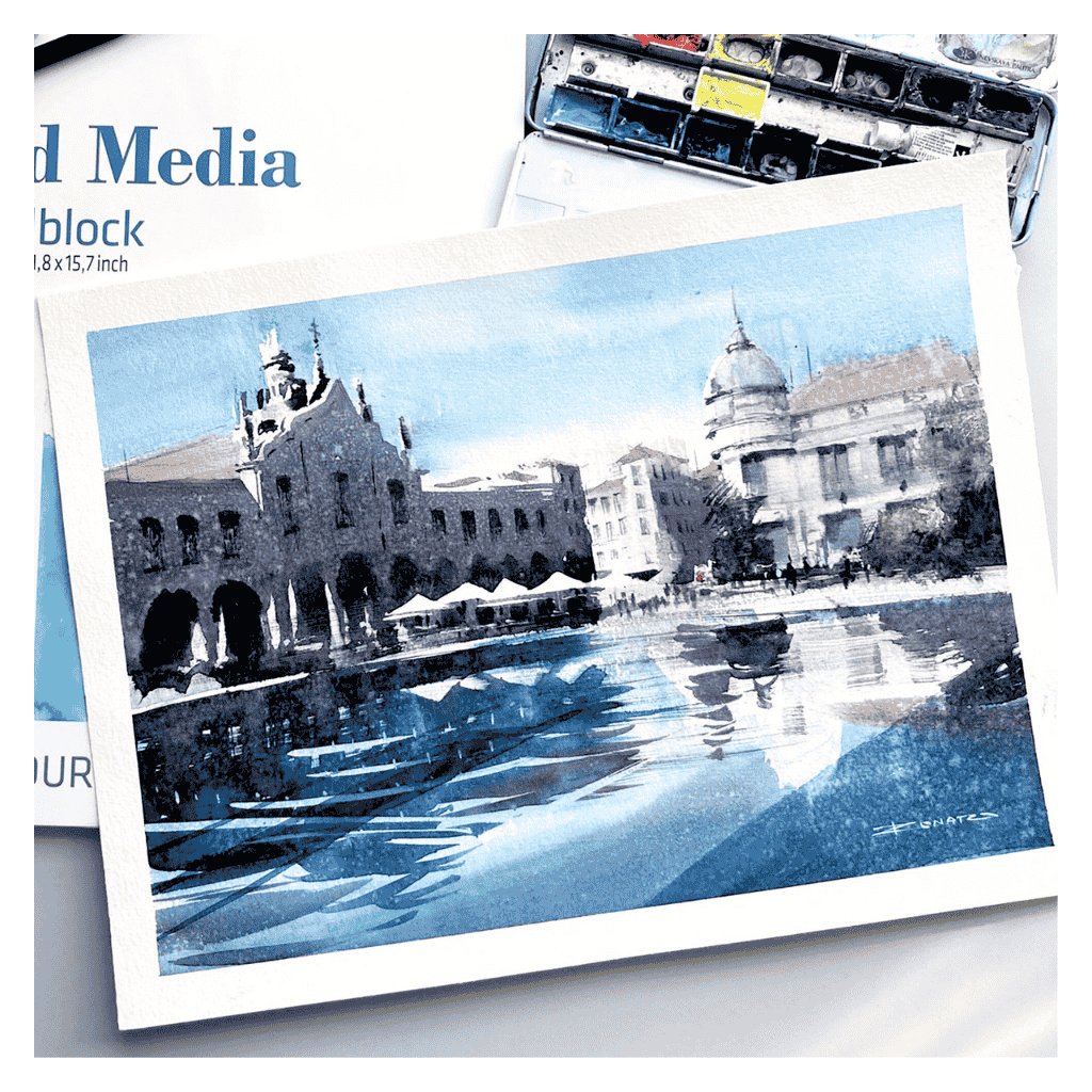 Univerzálne bloky Hahnemühle Mixed media 310 gr/m2 - papiere majú jemnozrnnú povrchovú štruktúru. Boli špeciálne vyvinuté pre širokú škálu maliarskych techník ako je akvarel, akryl a gvaš.