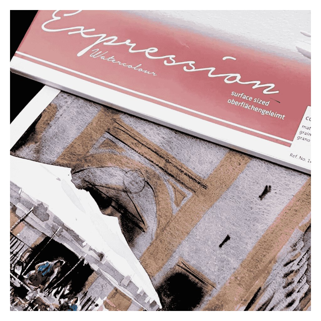 Akvarelové bloky Expression Cold pressed 300 gr/m2 - 100 % bavlna - 30x40 cm majú papiere prírodne bielej farby s jemne zrnitým povrchom. Sú vhodné na všetky techniky mokrého maľovania a leptania.