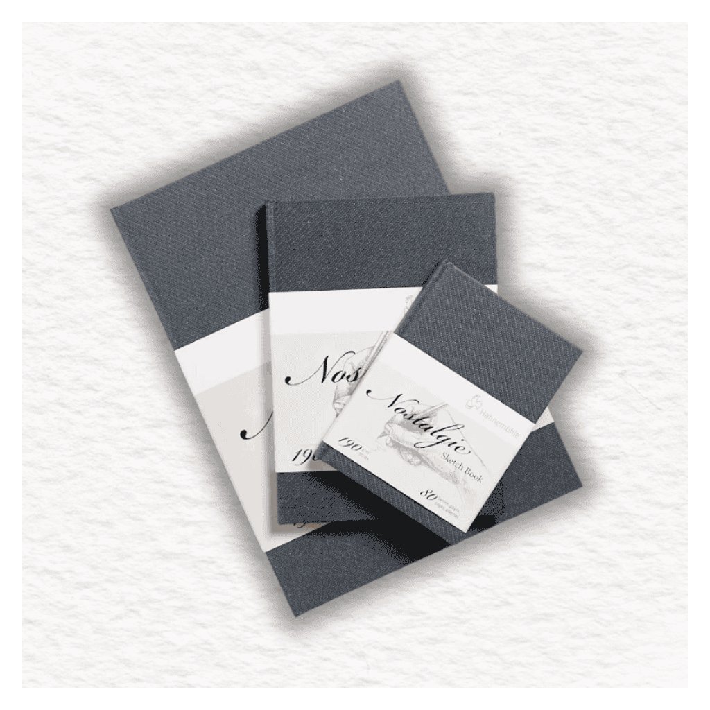 Skicár Hahnemühle Nostalgie 190 gr/m2 má ťažký, prírodne biely papier, ktorý je pevný a pružný. Jeho textúra a kvalita umožňuje akýkoľvek druh práce od architektonického náčrtu až po rýchly, živý farebný náčrt. Vďaka knižnej väzbe antracitovej farby s ľanovou štruktúrou je skicár odolný a príjemný na dotyk. Zošívanie nití zaisťuje pevnú väzbu a dobrú rovinnosť listov, čo zaisťuje, že obojstranné náčrty a kresby cez záhyb možno vytvárať bez problémov.