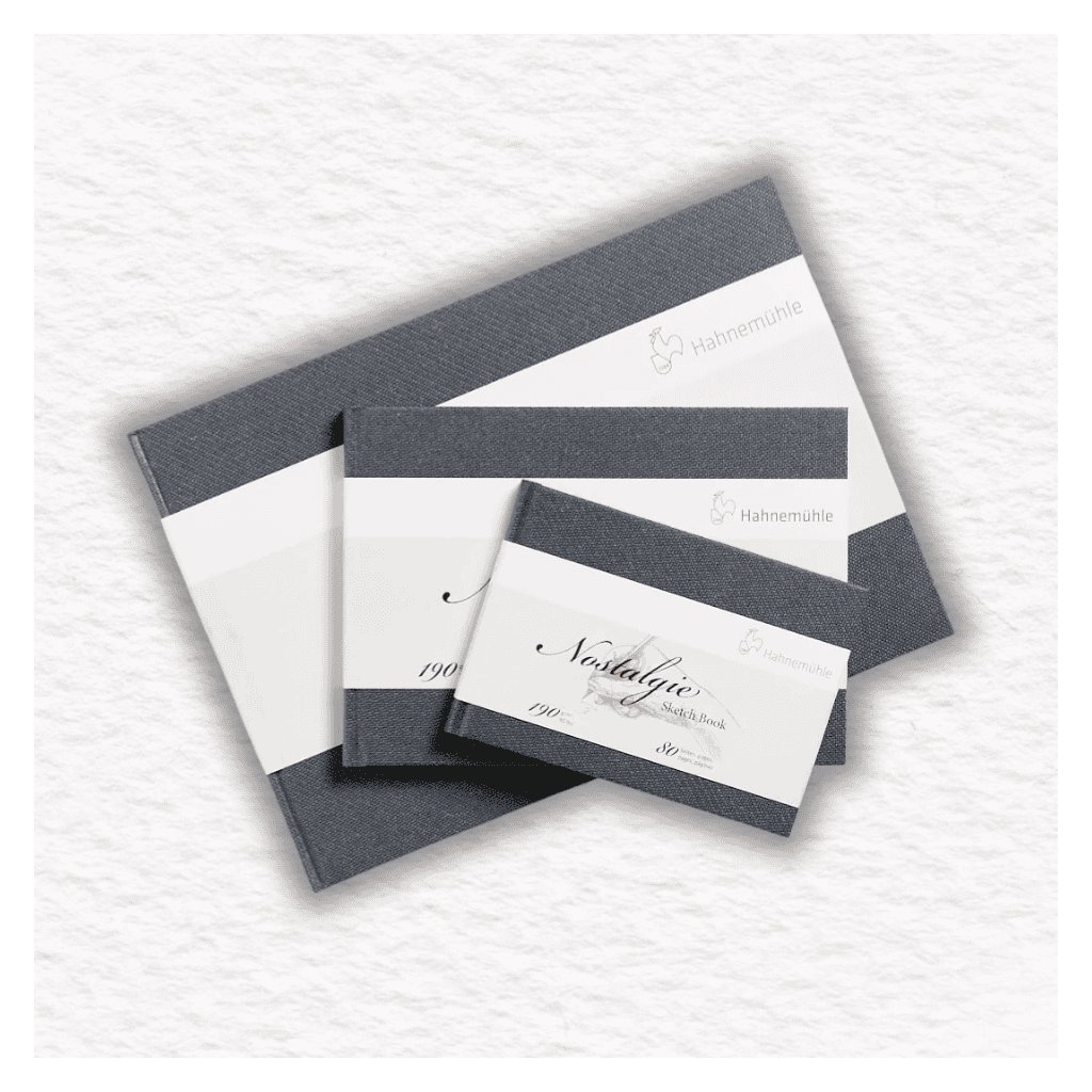 Skicár Hahnemühle Nostalgie 190 gr/m2 má ťažký, prírodne biely papier, ktorý je pevný a pružný. Jeho textúra a kvalita umožňuje akýkoľvek druh práce od architektonického náčrtu až po rýchly, živý farebný náčrt. Vďaka knižnej väzbe antracitovej farby s ľanovou štruktúrou je skicár odolný a príjemný na dotyk. Zošívanie nití zaisťuje pevnú väzbu a dobrú rovinnosť listov, čo zaisťuje, že obojstranné náčrty a kresby cez záhyb možno vytvárať bez problémov.