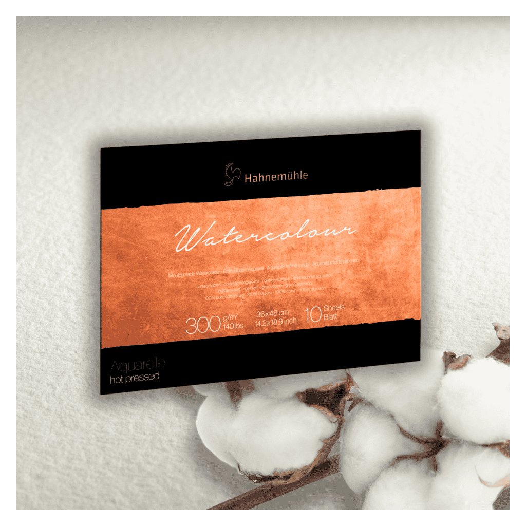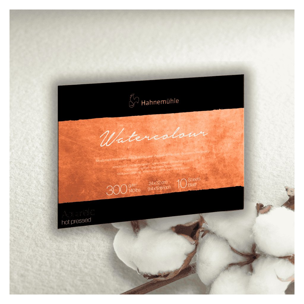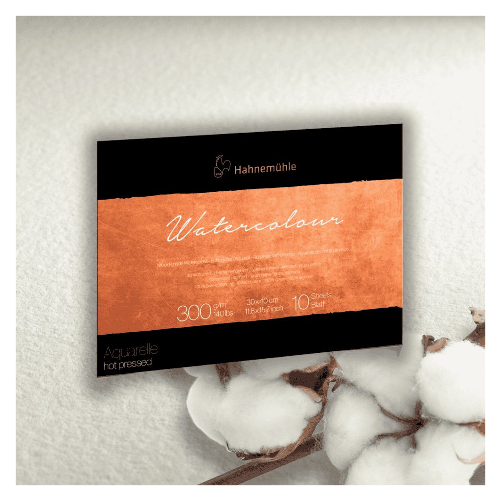 Akvarelové papiere a bloky The Collection Watercolour Hot pressed 300 gsm - 100 % bavlna stanovujú nové štandardy pre vysokokvalitné akvarelové papiere. Starostlivo vybraný rad bavlny ponúka mimoriadne pevné vlákna a neporovnateľnú čistotu. Výber tých najlepších surovín a výhradne prírodných plniacich materiálov dáva papierom ich bezkonkurenčnú kvalitu.
