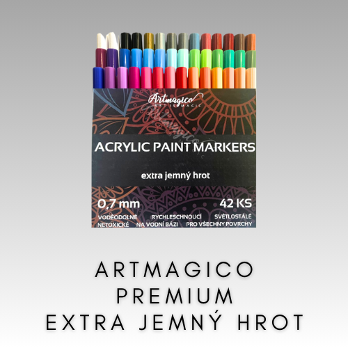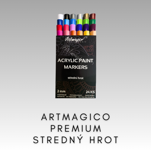Akrylové markery Artmagico Premium patria k najkvalitnejším akrylovým markerom vôbec. Sú produktom, pri výrobe ktorého sa používa relatívne nová technológia využívajúca akrylové farby na vodnej báze.