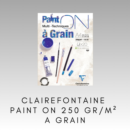 Mix Média blok Clairefontaine - Paint'On - A Grain - 250 gr/m2 - A4 je ideálny na použitie s celým radom médií ako akryl, akvarel, gvaš, atrament, ceruzky, uhlík, markery,...