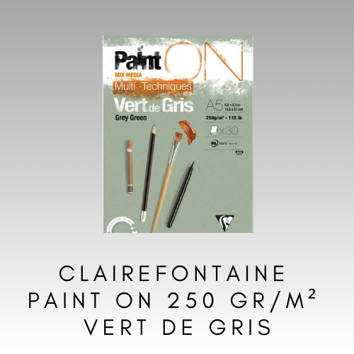 Mix Média blok Clairefontaine - Paint'On - Grey Green - 250 gr/m2 - A3 je obľúbený pre svoju veľmi jemnú farbu, ktorá zvýrazňuje hĺbku čiernych čiar a lesk jasných...