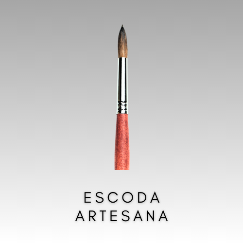 Štetec Escoda Artesana má štetiny zo srsti poníka tmavej farby s miernym prirodzeným prameňom. Pojme veľké množstvo farby. Špeciálny proces vytvrdzovania vedie k tomu, že štetec má pozoruhodnú pevnosť. Má krátku lakovanú drevenú rukoväť z vlašského orecha s poniklovanou mosadznou objímkou, ktorá je ideálna pre detailné práce. Tento okrúhly štetec, ktorý sa zužuje do hrotu, je vhodný na skicovanie, obrysovanie a prácu s detailami. Taktiež sa používa na dekoráciu keramiky a porcelánu a je cenený aj v kozmetike.