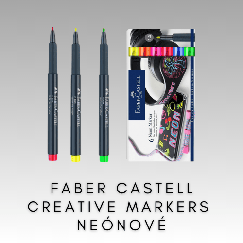 Kreatívne markery Faber Castell - Neon - 6 ks pridávajú vášmu dielu neónovú žiaru. Vďaka tomu sú tiež ideálne na zdobenie a skrášľovanie vašich topánok, zrkadiel, hrnčekov,...