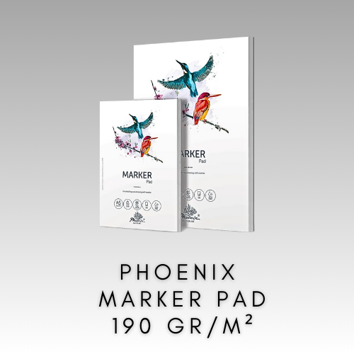 - Phoenix Marker Pad - skicár 190 gr/m2 má veľmi mäkký a zároveň vodeodolný papier, ktorý je ideálny na kreslenie všetkými druhmi markerov. Papier je vyrobený tak, aby atrament zostal na povrchu a nepresakoval na druhú stranu.
