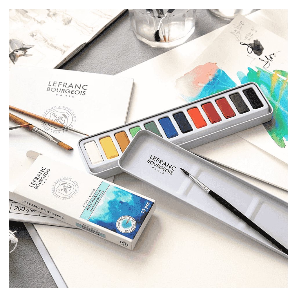 Akvarelové farby Lefranc & Bourgeois Studio Watercolor - 12 polpanvičiek je schválená učiteľmi akvarelu a je určená pre umelcov a študentov, ktorí skúmajú médium. Vysokokvalitné farby sú ideálne na miešanie a prekrývanie, pričom poskytujú vynikajúcu farebnú silu a transparentnosť. Sú skvelé na dosiahnutie jemných tónov.