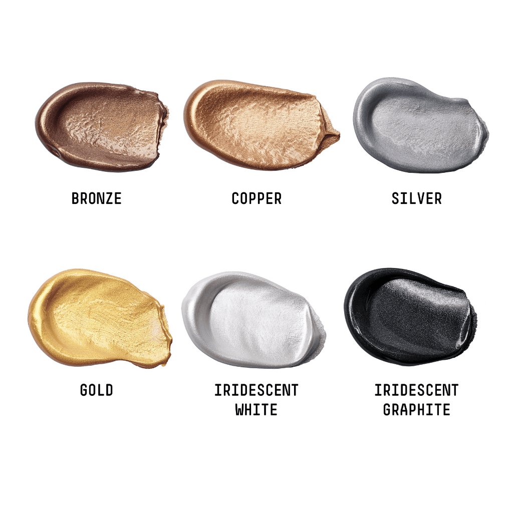 - odtiene: Gold, Silver, Bronze, Copper, Iridescent White, Iridescent Graphite