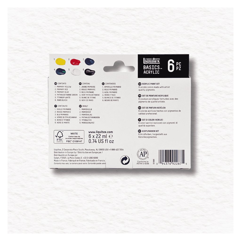 Akrylové farby Liquitex Basics - Primary Colours - 6x22 ml sú z rady študentskej kvality, vyrobené na každodenné použitie pre umelcov všetkých úrovní. Obsahujú akrylové farby so strednou konzistenciou, vyrobenou zo svetlostálych umeleckých pigmentov.
