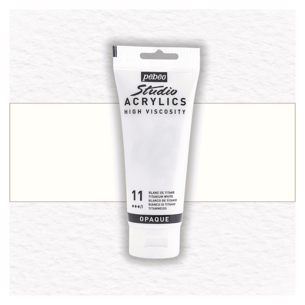 Akrylová farba Pébéo Studio Acrylics High Viscosity - 11 Titanium White je farba so saténovým matným povrchom. Hustá konzistencia farby je po zaschnutí trvalá a film je pevný a pružný voči deformácii.