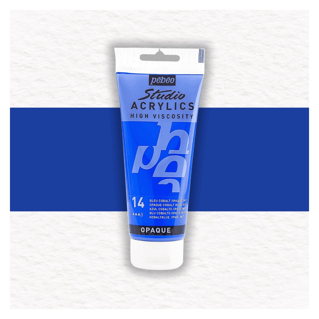 Akrylová farba Pébéo Studio Acrylics High Viscosity - 14 Cobalt Blue Hue je farba so saténovým matným povrchom. Hustá konzistencia farby je po zaschnutí trvalá a film je pevný a pružný voči deformácii.