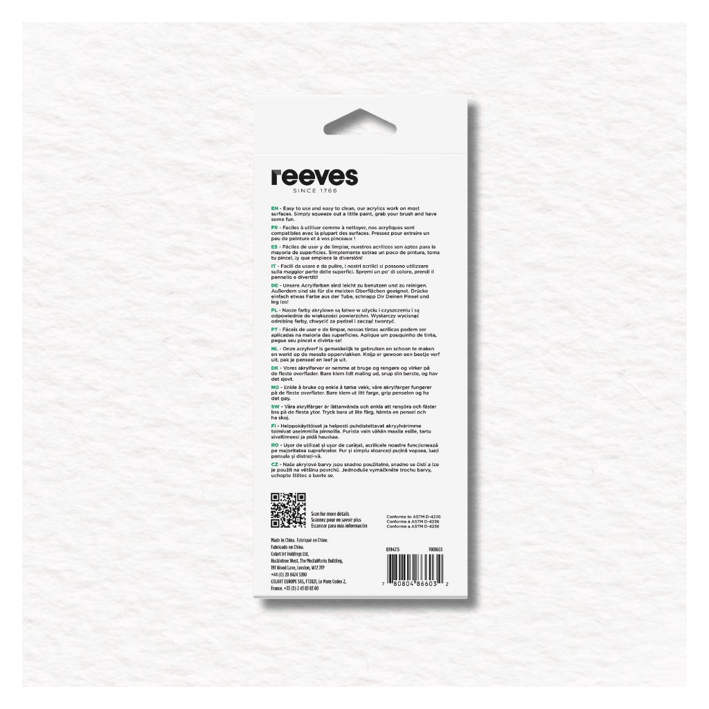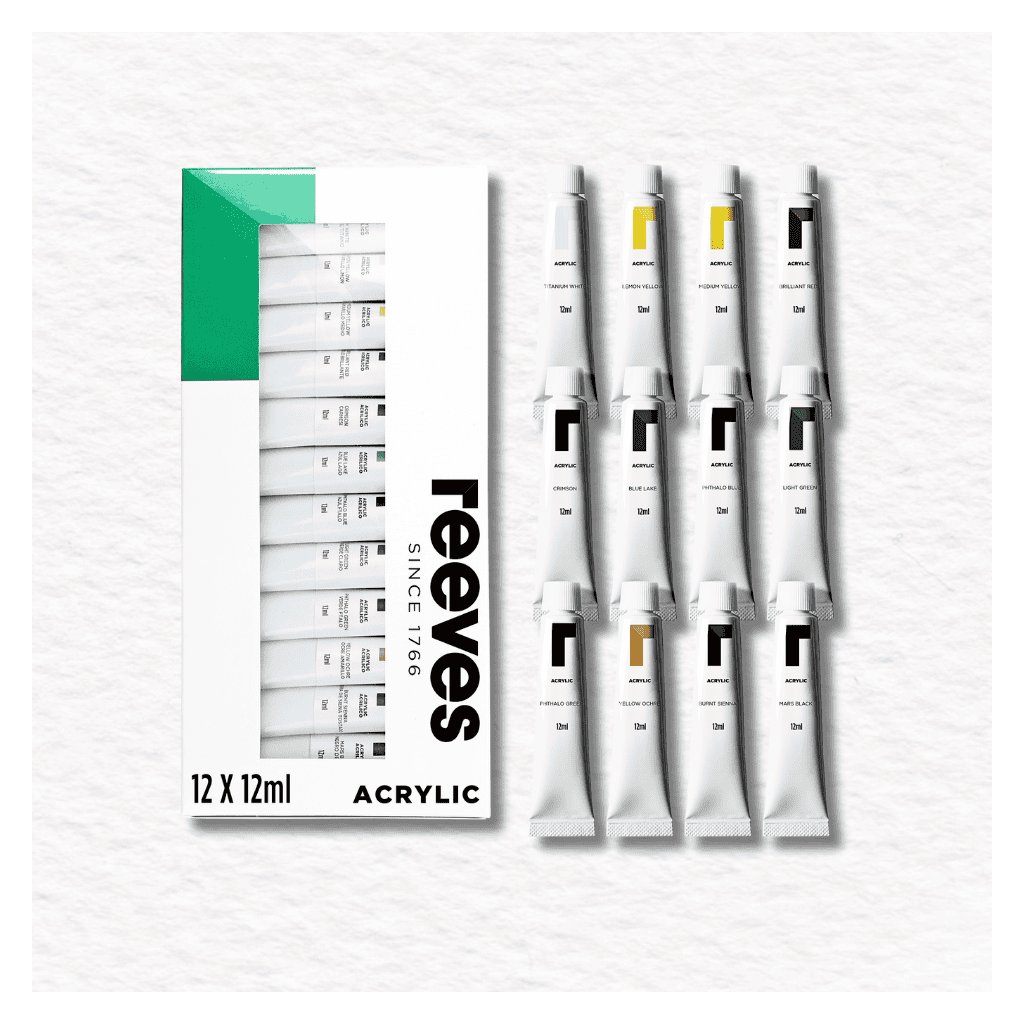 Akrylové farby Reeves - 12x12 ml sú perfektným spoločníkom na vašej ceste maľovania s akrylovými farbami. Relaxujte a oddýchnite si pri užívaní výrazných farieb, ktoré vám umožnia vytvoriť všetko od hrubých, výrazných ťahov až po hladké a rovnomerné povrchy.