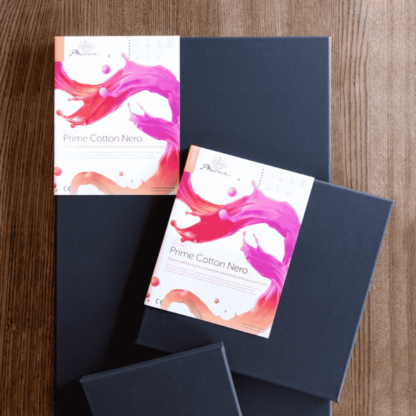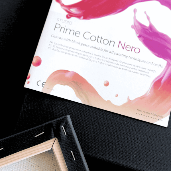 - čierne bavlnené plátna Studio Prime Cotton Nero - 100 % bavlna 300 gr/m2 sú ideálne pre prácu s metalickými a perleťovými farbami a olejovými pastelmi. Stredná zrnitosť plátna je optimálna pre akúkoľvek maliarsku techniku, olej, akryl, gvaš ... a remeslá.