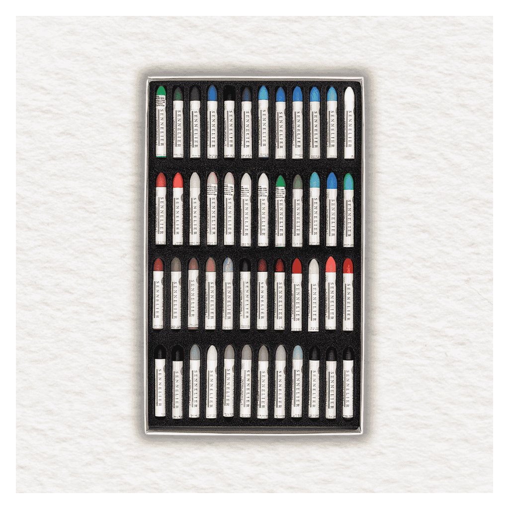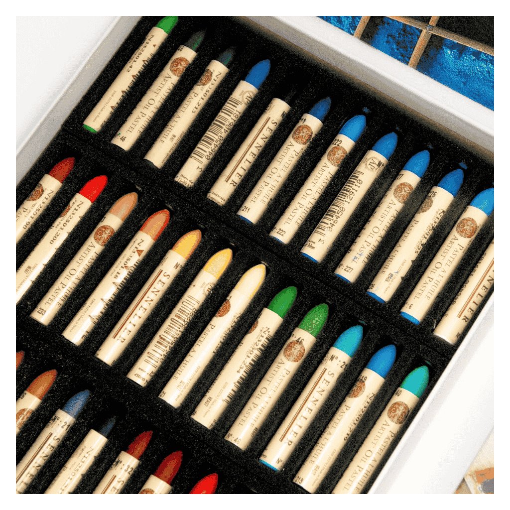 Olejové pastely Sennelier Assorted - 48 ks využívajú komponenty použité vo všetkých farbách Sennelier: pigmenty najvyššej kvality, extrémne čisté syntetické spojivo a minerálny vosk. Pigmenty sú mleté s inertným, nesikavým spojivom, ktoré neoxiduje a nemá žiadny vplyv na stabilitu filmu ani na povrch. Tento základ sa potom zmieša s voskom (neutrálne pH). Vyváženosť tejto zmesi poskytuje olejovým pastelom Sennelier jedinečnú mastnosť a krémovú textúru, ktorá umožňuje veľkú voľnosť v obrazovom vyjadrení.