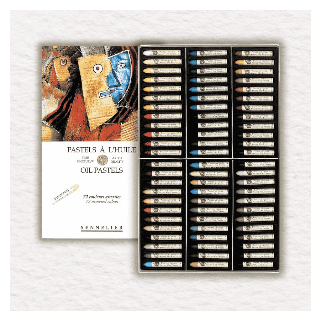 Olejové pastely Sennelier Assorted - 72 ks využívajú komponenty použité vo všetkých farbách Sennelier: pigmenty najvyššej kvality, extrémne čisté syntetické spojivo a minerálny vosk. Pigmenty sú mleté s inertným, nesikavým spojivom, ktoré neoxiduje a nemá žiadny vplyv na stabilitu filmu ani na povrch. Tento základ sa potom zmieša s voskom (neutrálne pH). Vyváženosť tejto zmesi poskytuje olejovým pastelom Sennelier jedinečnú mastnosť a krémovú textúru, ktorá umožňuje veľkú voľnosť v obrazovom vyjadrení.