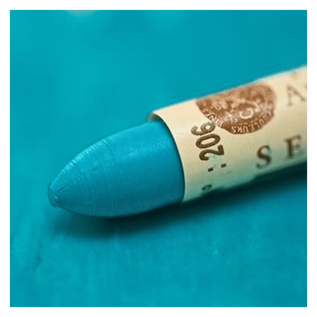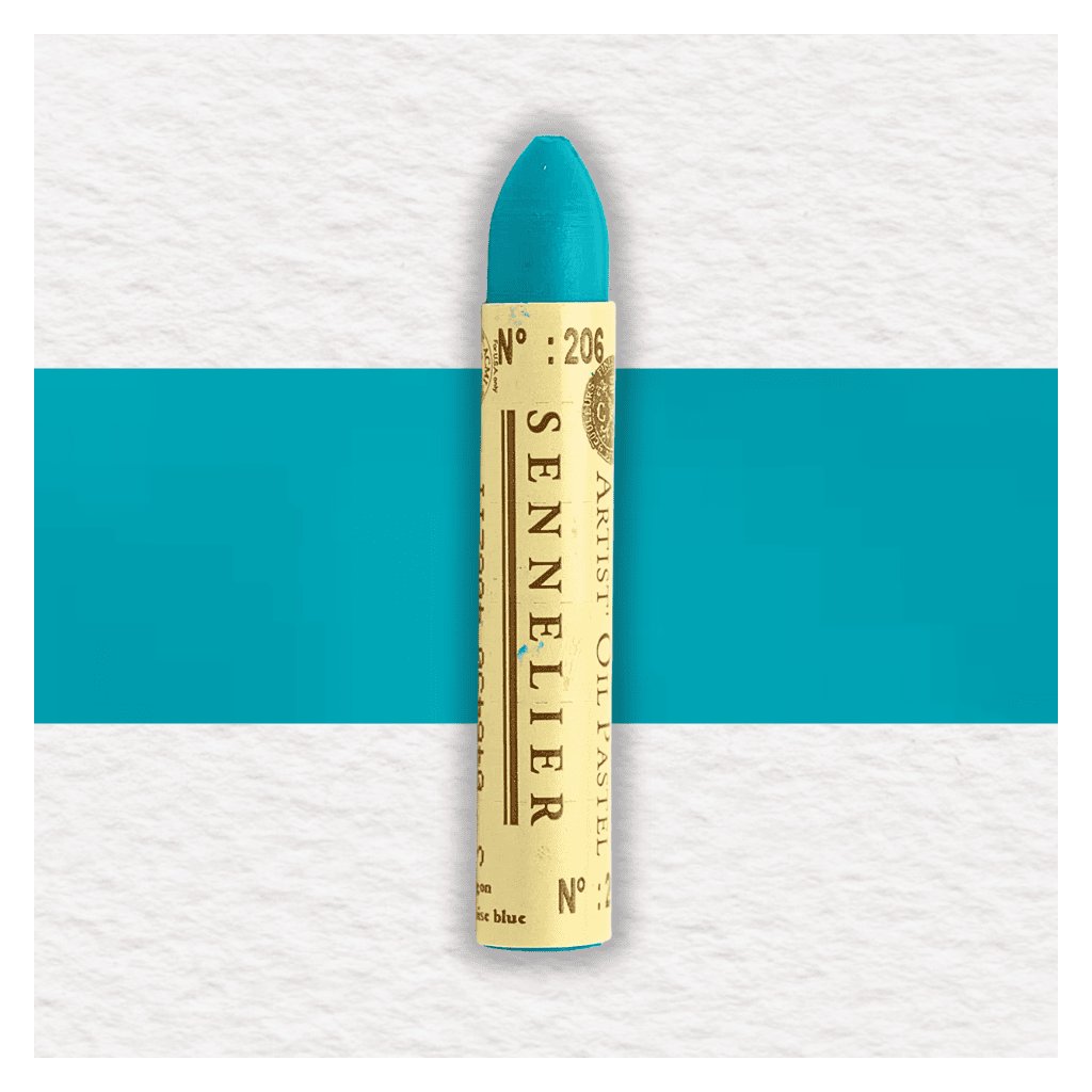 Olejový pastel Sennelier - 206 Turquoise Blue využíva komponenty použité vo všetkých farbách Sennelier: pigmenty najvyššej kvality, extrémne čisté syntetické spojivo a minerálny vosk. Pigmenty sú mleté s inertným, nesikavým spojivom, ktoré neoxiduje a nemá žiadny vplyv na stabilitu filmu ani na povrch. Tento základ sa potom zmieša s voskom (neutrálne pH). Vyváženosť tejto zmesi poskytuje olejovým pastelom Sennelier jedinečnú mastnosť a krémovú textúru, ktorá umožňuje veľkú voľnosť v obrazovom vyjadrení.
