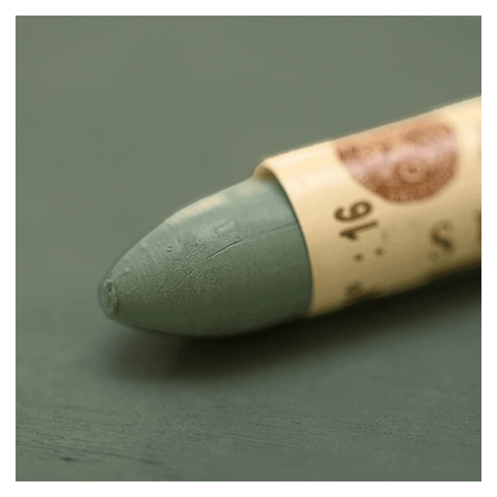 Olejový pastel Sennelier - 016 Grey Green využíva komponenty použité vo všetkých farbách Sennelier: pigmenty najvyššej kvality, extrémne čisté syntetické spojivo a minerálny vosk. Pigmenty sú mleté s inertným, nesikavým spojivom, ktoré neoxiduje a nemá žiadny vplyv na stabilitu filmu ani na povrch. Tento základ sa potom zmieša s voskom (neutrálne pH). Vyváženosť tejto zmesi poskytuje olejovým pastelom Sennelier jedinečnú mastnosť a krémovú textúru, ktorá umožňuje veľkú voľnosť v obrazovom vyjadrení.