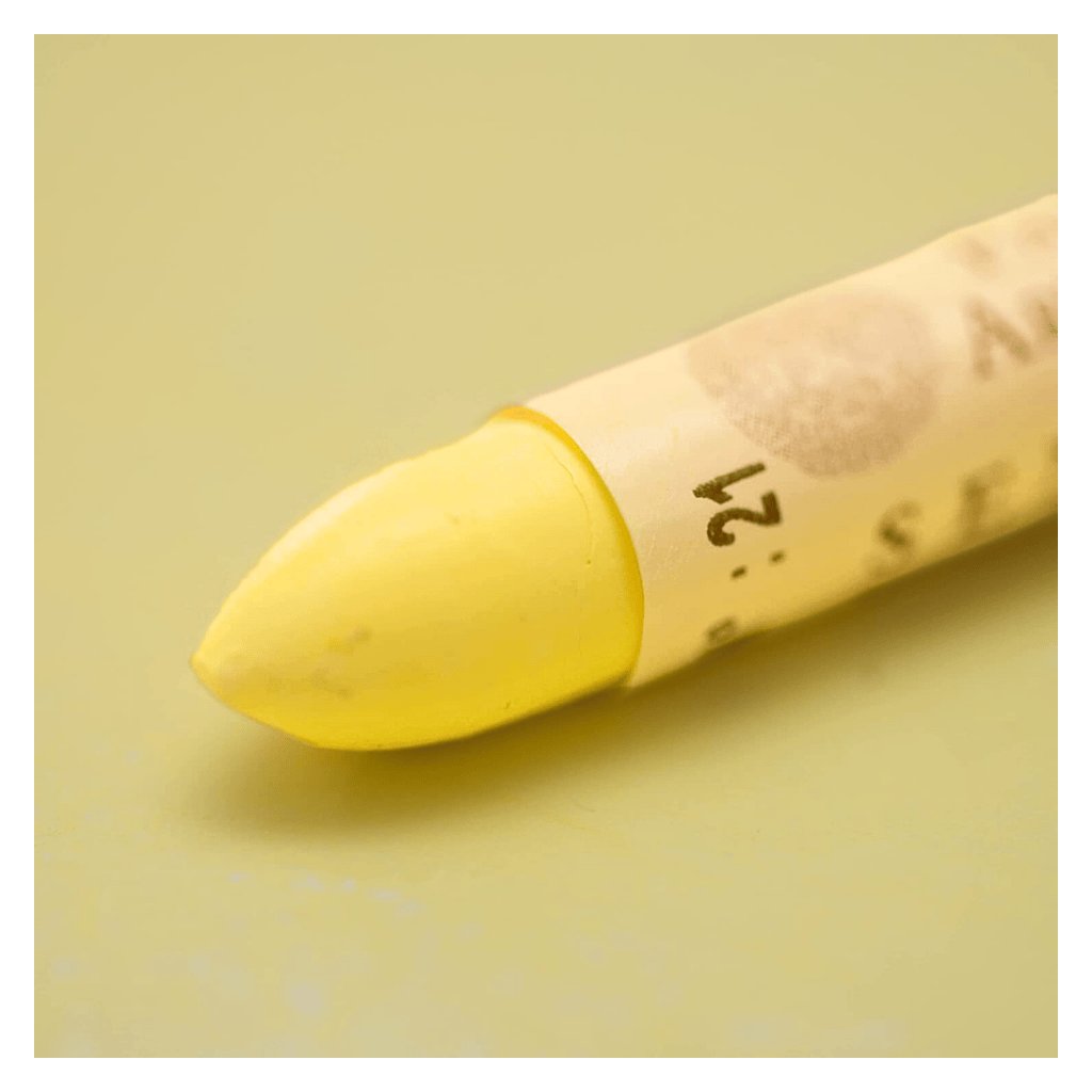 Olejový pastel Sennelier - 021 Naples Yellow využíva komponenty použité vo všetkých farbách Sennelier: pigmenty najvyššej kvality, extrémne čisté syntetické spojivo a minerálny vosk. Pigmenty sú mleté s inertným, nesikavým spojivom, ktoré neoxiduje a nemá žiadny vplyv na stabilitu filmu ani na povrch. Tento základ sa potom zmieša s voskom (neutrálne pH). Vyváženosť tejto zmesi poskytuje olejovým pastelom Sennelier jedinečnú mastnosť a krémovú textúru, ktorá umožňuje veľkú voľnosť v obrazovom vyjadrení.