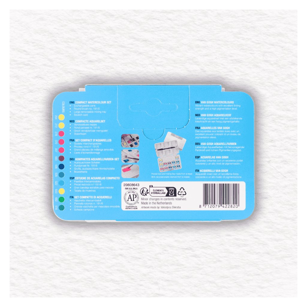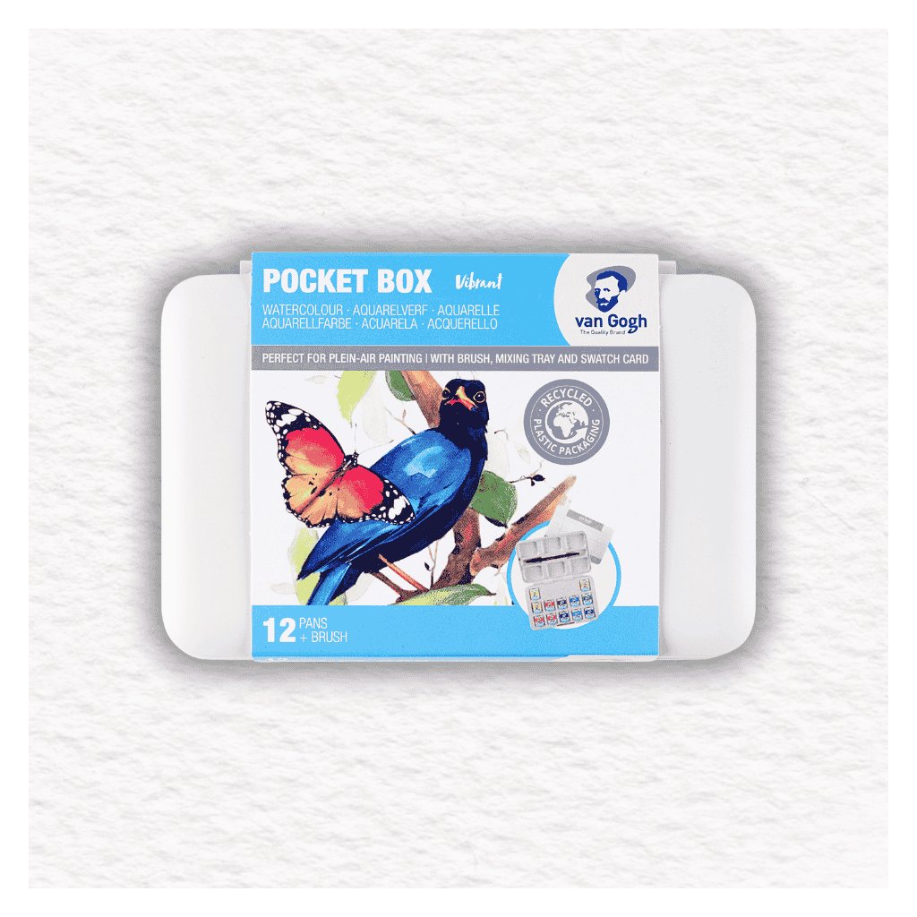 Sada akvarelových farieb Van Gogh Pocket Box Vibrant Colours - 12 polpanvičiek v plastovej krabičke obsahuje výber farieb, ktoré sú vhodné pre živé motívy. Sú hodnotené ako rozsah farieb pre študentov a umelcov.