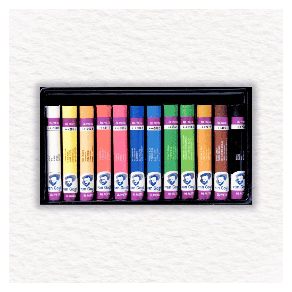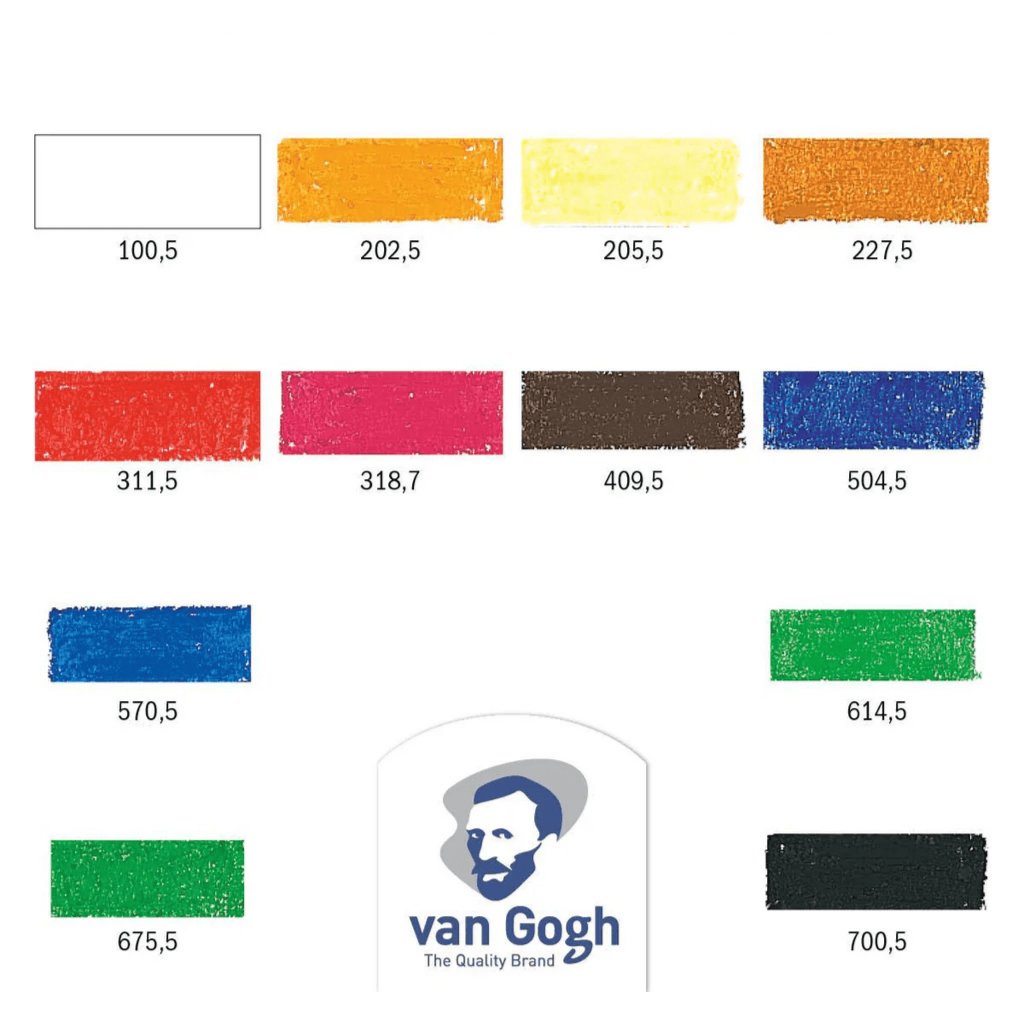Olejové pastely Van Gogh Starter Set - 12 ks sú krémové umelecké pastely. Ideálne sa hodia pre tých, ktorí chcú začať maľovať olejovými pastelmi. Môžu byť tiež použité v kombinácii s inými suchými alebo mokrými médiami. Poskytujú vynikajúce výsledky pre serióznu pastelovú alebo olejovú maľbu na papier alebo plátno. Pastely je možné použiť priamo, nanášať vo farebných vrstvách, zmiešať s handričkou alebo riediť minerálnym liehom.