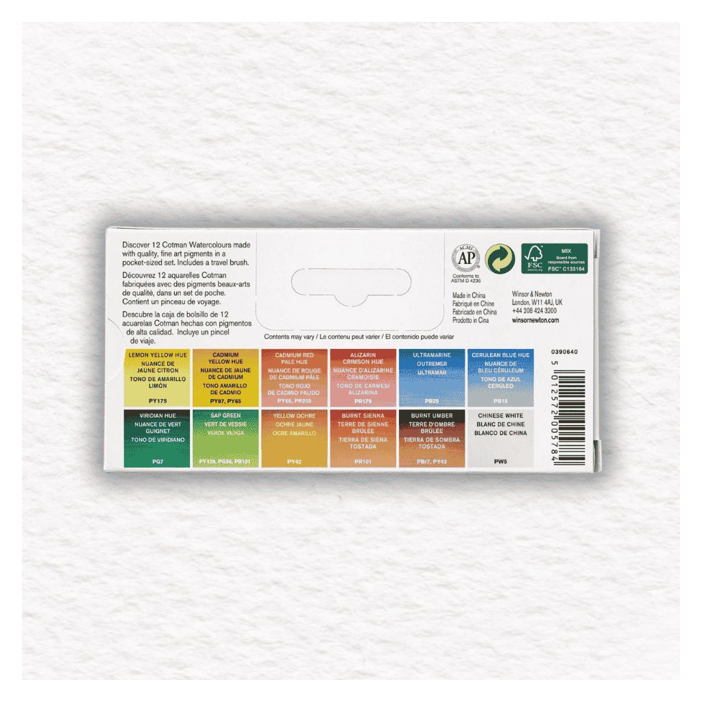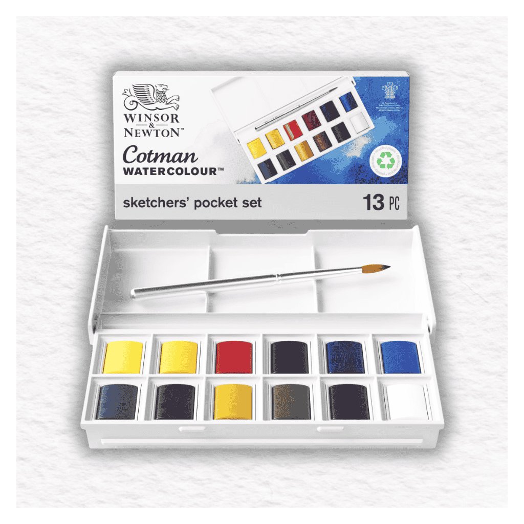 Akvarelové farby Winsor & Newton Cotman Sketcher's Pocket Box - 12 polpanvičiek používajú umelecké pigmenty so zníženým obsahom pigmentu ako rada Professional Watercolor, čo z nich robí dostupnú voľbu a zároveň nekompromisnú kvalitu. Transparentné akvarelové farby Cotman sú formulované na vytvorenie jednotnej konzistencie, sú ideálne pre nových používateľov.