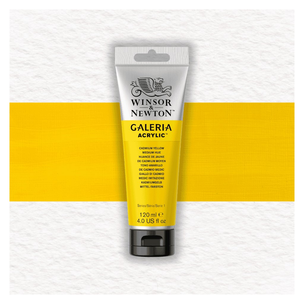 Akrylová farba Winsor & Newton Galeria - Cadmium Yellow Medium Hue - 120 ml je vysokokvalitná akrylová farba, ktorá poskytuje profesionálne výsledky, ideálne pre umelcov, ktorí chcú vysokokvalitný a dostupnejší sortiment. Rada Galeria Acrylic ponúka vynikajúcu brilantnosť, pigmenty profesionálnej kvality, kryciu schopnosť a stálosť s hladkým, saténovým povrchom.