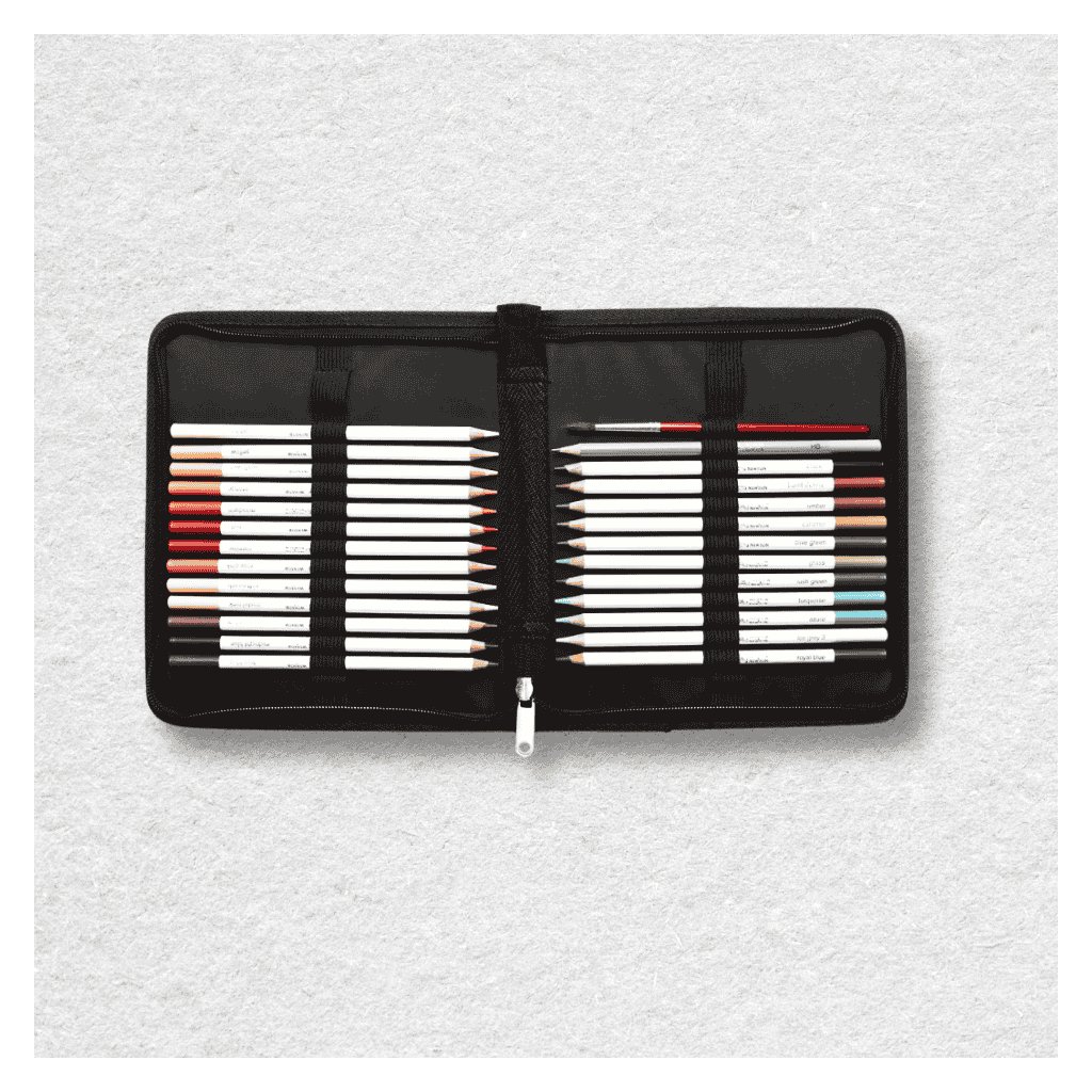 - 24 akvarelových ceruziek - white ○ yellow ○ sunflower ○ orange ○ mandarin ○ red ○ carmine ○ rose pink ○ pastel pink ○ soft peach ○ plum ○ midnight blue ○ true blue ○ royal blue ○ ice grey 3 ○ azure ○ turquoise ○ grass ○ lush green ○ olive green ○ caramel ○ burnt sienna ○ umber ○ black